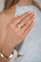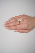 Meta Description: Shop the Elani Pearl Ring. A classic gold open-ring with double pearls for an elegant and modern accessory. Lightweight, stylish, and adjustable.