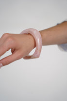 Close-up of the Solyn Chunky Bracelet on wrist, featuring a glossy ivory marbled finish.