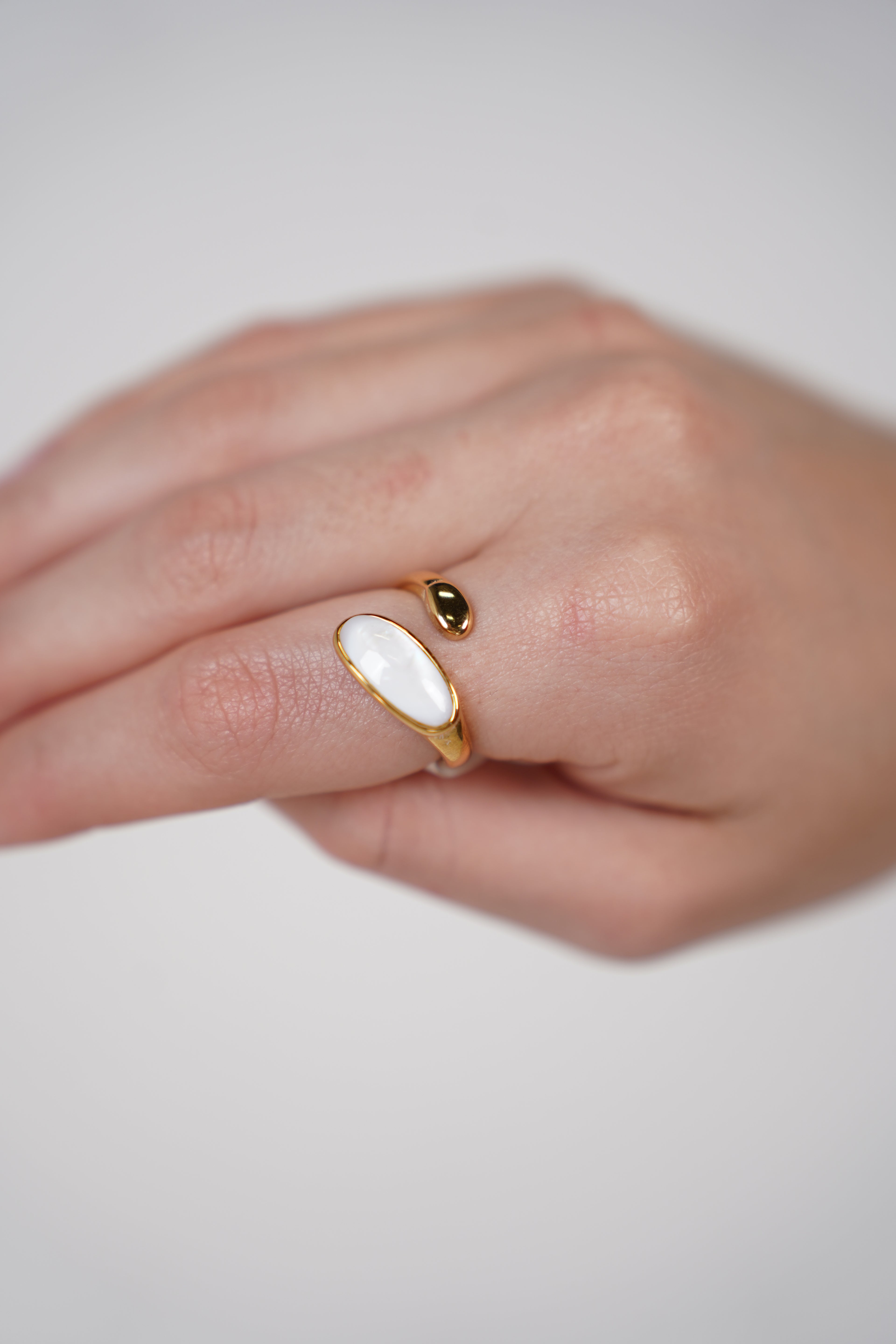 Sorea Ring – Gold Open Ring with White Oval Stone