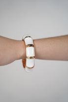 The Zairel Chunky Bracelet is the perfect bold accent piece to elevate any outfit. This eye-catching bangle features rich marbled panels in warm peach, cream, and bronze tones, each outlined with glossy gold edges. Its chunky silhouette offers both comfort and presence, making it ideal for solo wear or stacked with other bracelets. Versatile and easy to slip on, this piece brings personality and polish to both everyday and elevated looks.