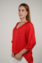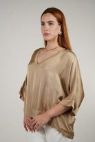 Say hello to your wardrobe staple with a twist. The Alice Blouse combines the timeless ease of a satin finish with an oversized draped cut that flatters all figures. Featuring a soft v-neckline and relaxed sleeves, this top is all about flow and feel. It’s one size for a reason – because it looks great on everyone. Available in a range of core neutrals and trendy seasonal shades, this blouse is perfect for tucking into high-waisted pants or leaving loose for that effortlessly put-together vibe.