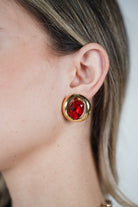 Alira Stud Earrings | Gold Round Gem Studs – Carema Boutique