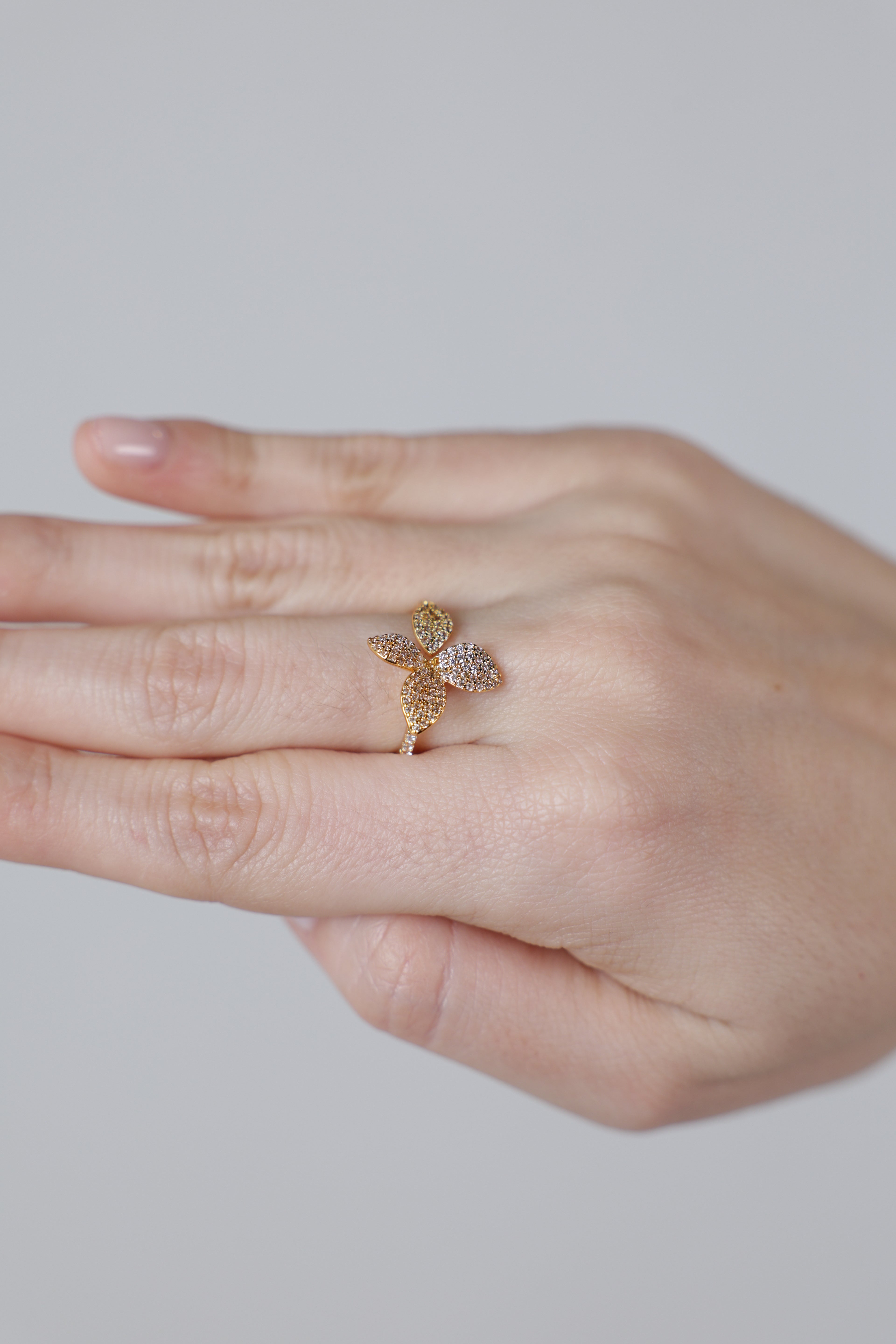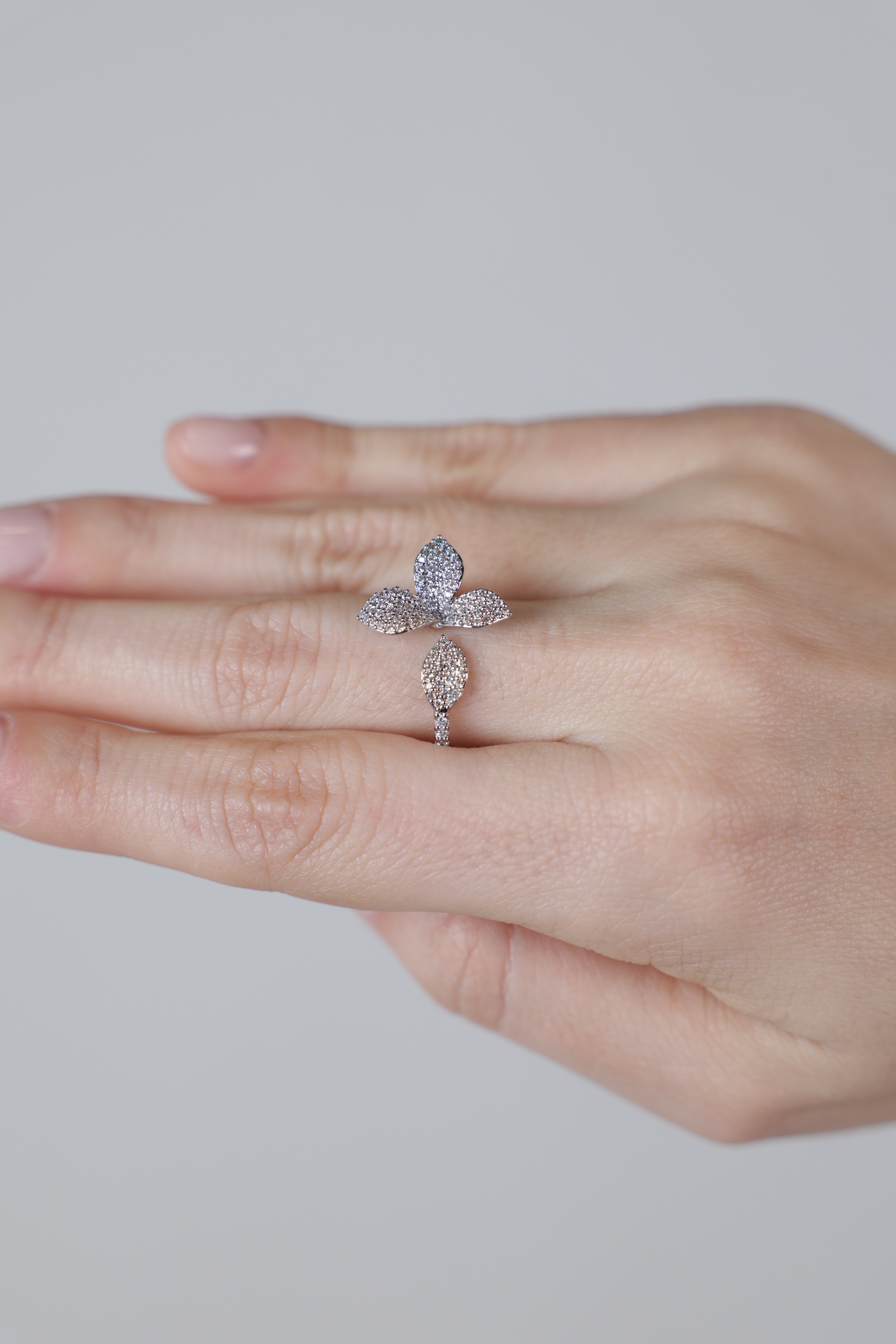 This sculptural pavé ring captures light through delicate symmetry and elevated craftsmanship.