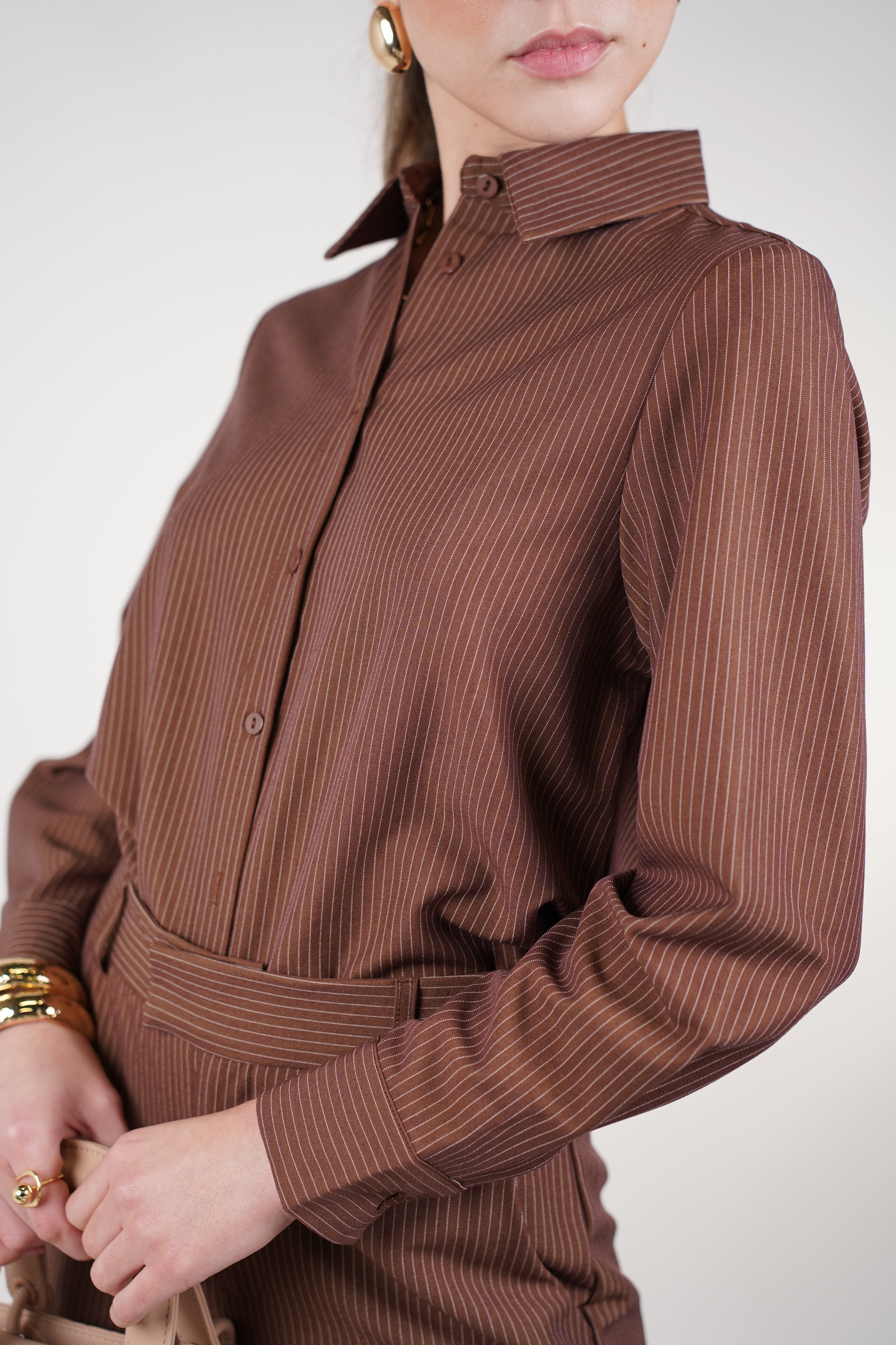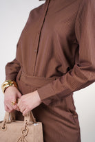 Belin Stripped Pants Set | Brown Striped Two-Piece Outfit – Carema Boutique