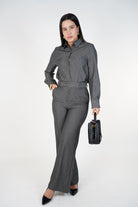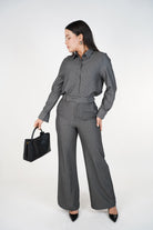 The matching high-waisted pants include a soft drape and straight-leg cut, creating a clean, balanced shape that flatters all body types. Whether styled for the office, dinner, or an elevated casual day, this set delivers timeless elegance with zero effort.