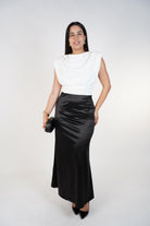 A silky, elegant maxi skirt designed to flow beautifully with every step.