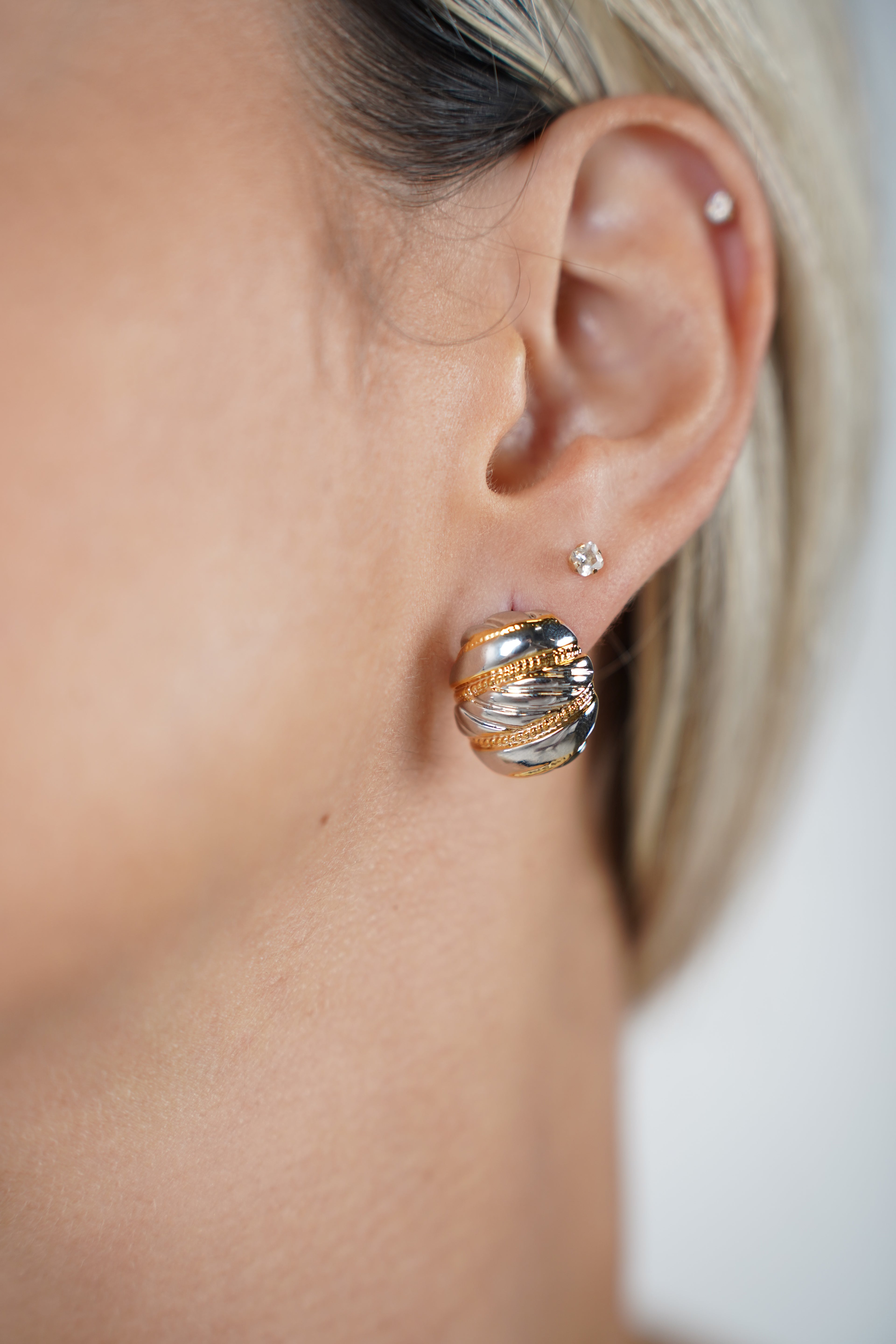 Two-tone and timeless, the Celia Earrings mix silver shine with golden texture for the perfect everyday statement.