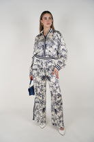 Daily Silk Pants Set – Monochrome Jungle Print Lounge Look