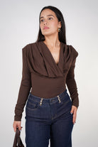Dovea Bodysuit – Chocolate Draped Long Sleeve Bodysuit | Carema Boutique