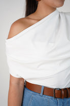 A lightweight, elegant draped top in a refreshing pastel yellow hue designed to pair effortlessly with your favorite trousers, skirts, or shorts.