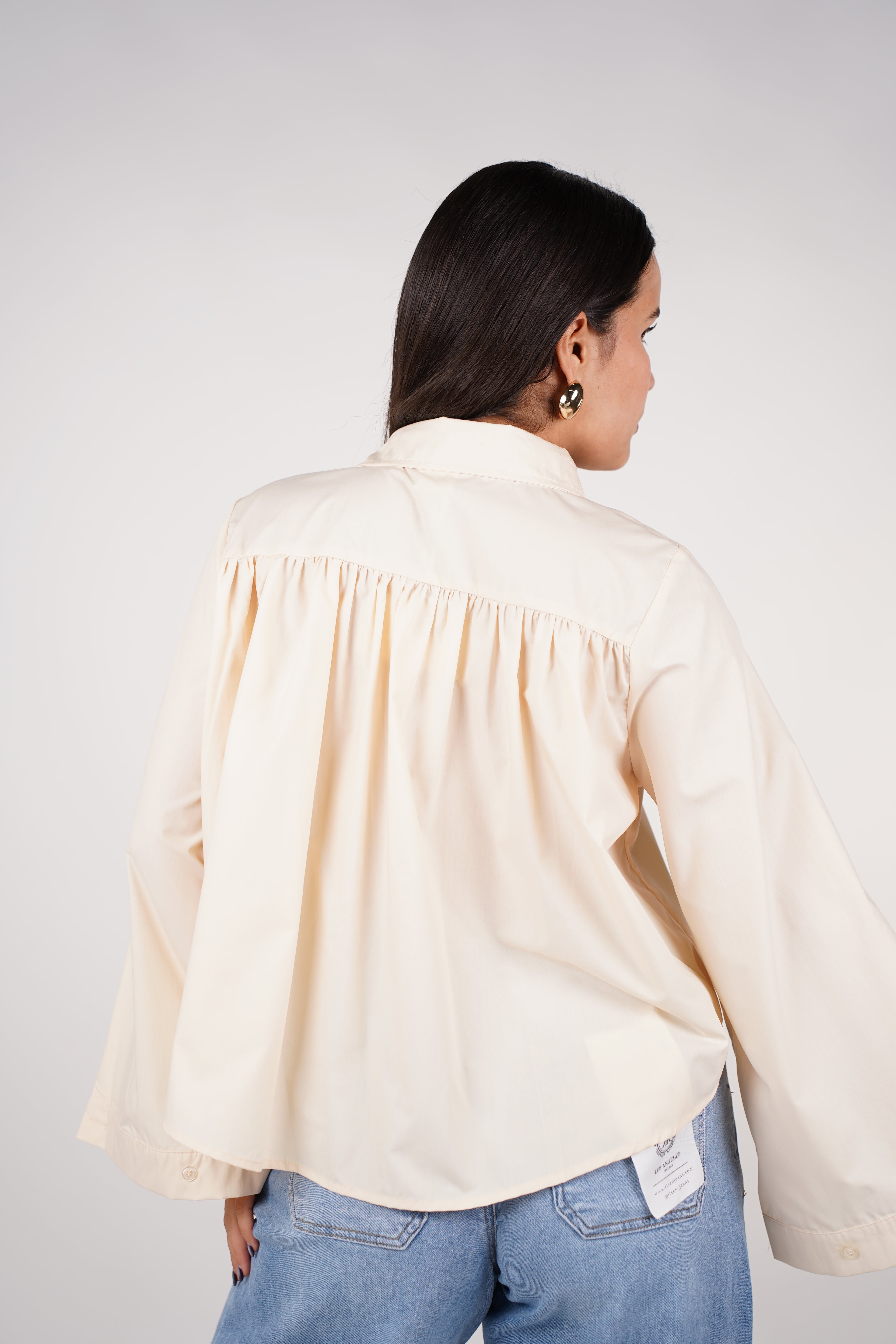 Designed with a classic collar and full button-front closure, this shirt keeps your look clean and modern while maintaining the perfect balance between minimal and sophisticated. Whether worn for work, brunch, or styled up for a chic evening outfit, this piece transitions effortlessly through your day.