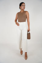 Meta Title: Genesis Wideleg Jeans – High-Waisted Cream Denim | Carema Boutique