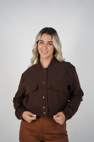 The Gisselle Jacket brings structure and sophistication to your outerwear collection. With its cropped bomber silhouette, matte tonal snap buttons, and oversized flap pockets, it’s both bold and minimal. Crafted in a deep wine hue, this jacket elevates your look whether you're layering it over basics or pairing it with denim. The ribbed hem and cuffs add subtle texture, making this an instant closet staple.