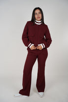 Harela Pants Set – Maroon Varsity Style Two-Piece | Carema Boutique