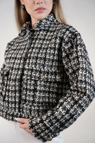 Javie Tweed Cropped Jacket | Black & White Tweed Jacket – Carema Boutique