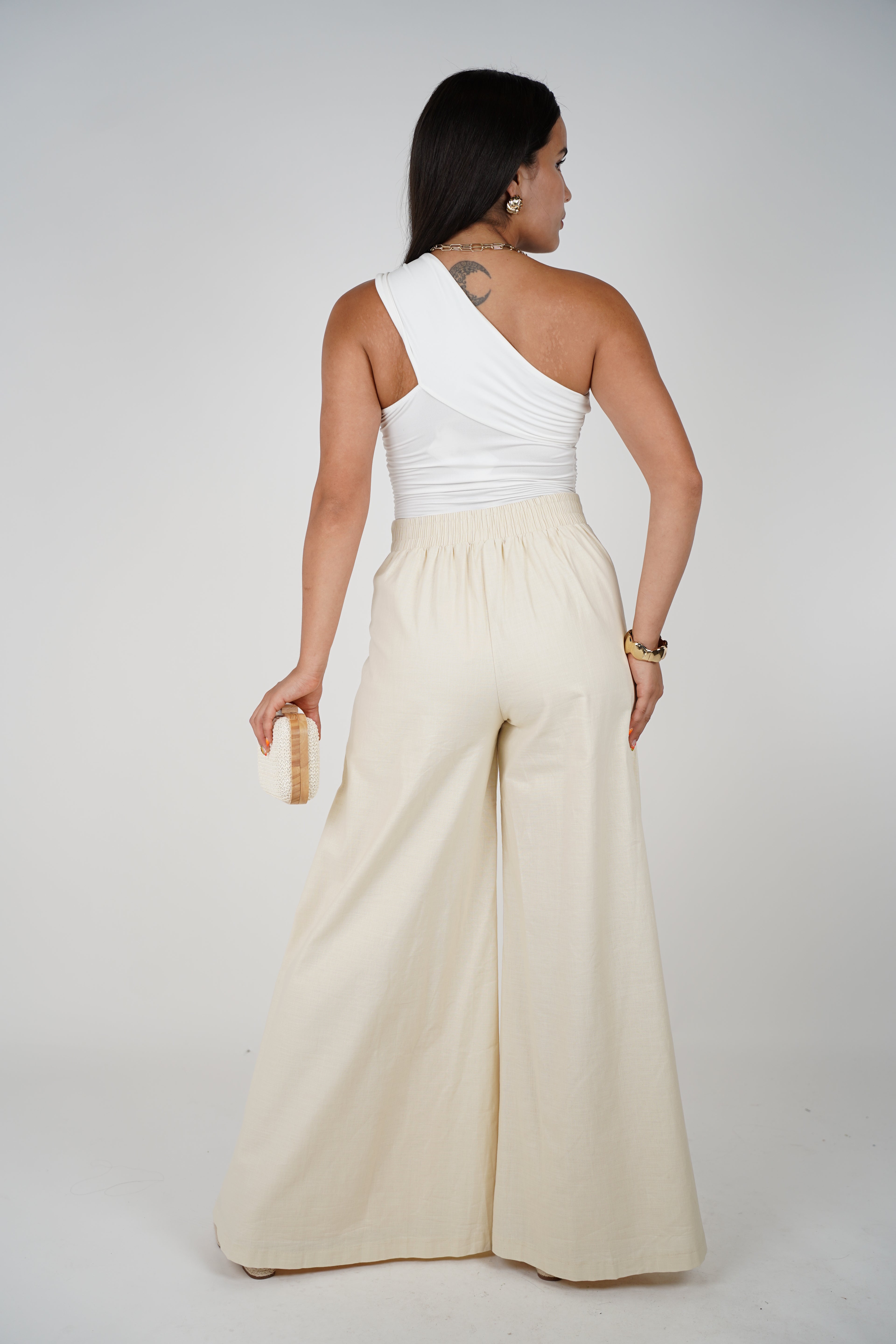 SEO Meta Title: Jina Flowy Pants – White Wide-Leg High-Waisted Trousers