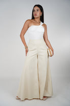 SEO Meta Description: Make a statement with the Jina Flowy Pants. These wide-leg white trousers are high-waisted, elegant, and easy to style for work or events.