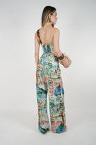 The Joraya Pants Set is made for statement-making summer style. Featuring a vivid, scenic watercolor-inspired print in lush greens, blues, and floral accents, this set brings artistic elegance to your wardrobe.