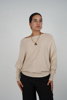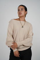 Meet the Julita Rosa Sweater — the definition of soft sophistication. This lightweight knit is crafted with a relaxed silhouette, subtle batwing sleeves, and a wide neckline that effortlessly drapes off the shoulder or sits neatly at the collarbone. Its timeless neutral tone makes it a versatile wardrobe essential, whether you're styling it with denim for a casual day or layering it over a skirt for a polished evening look. With one-size comfort and understated charm, it’s a must-have for effortless dressing.