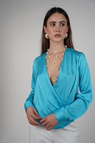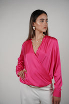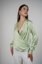Karo Longsleeve Blouse – Silky Wrap Style Elegance