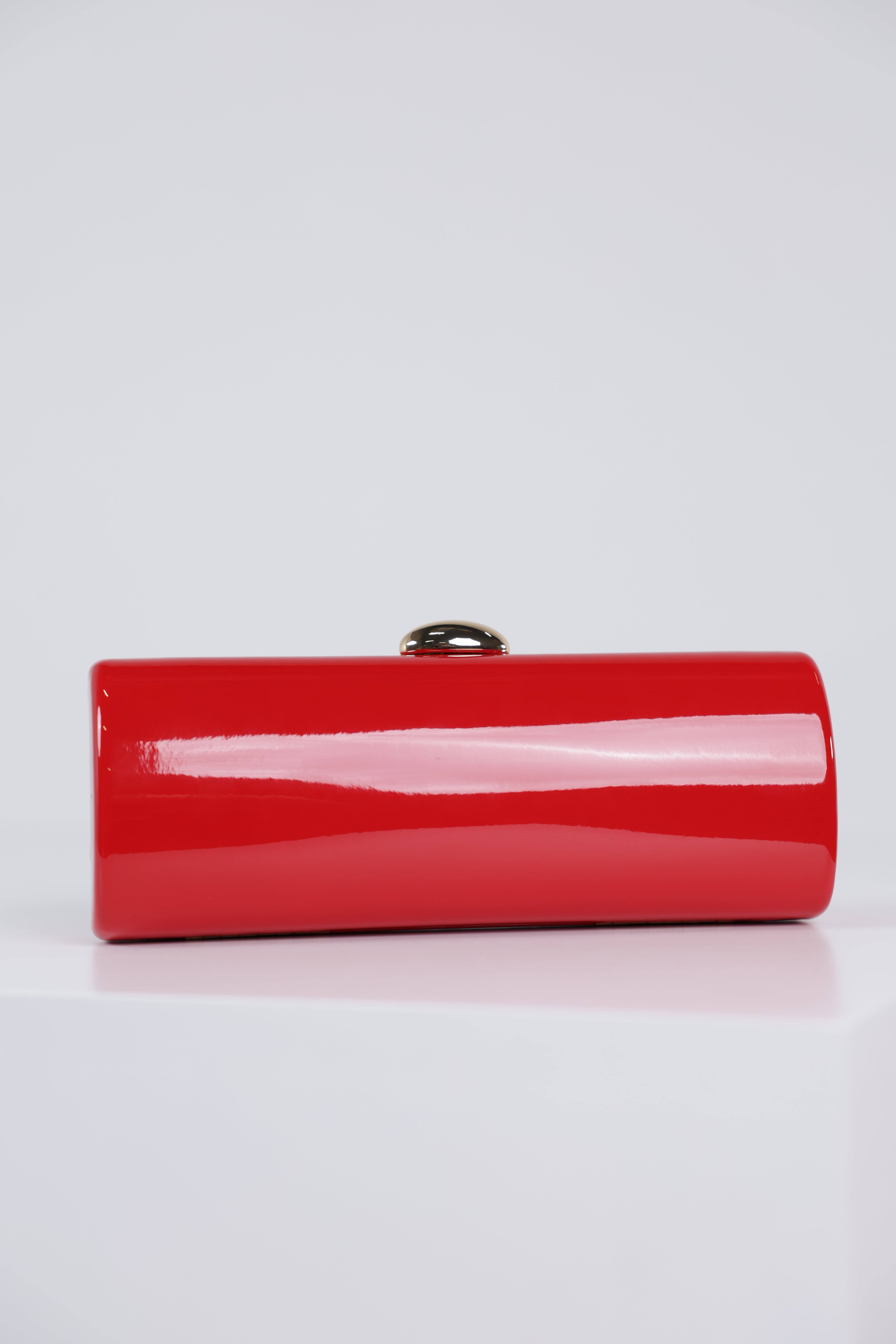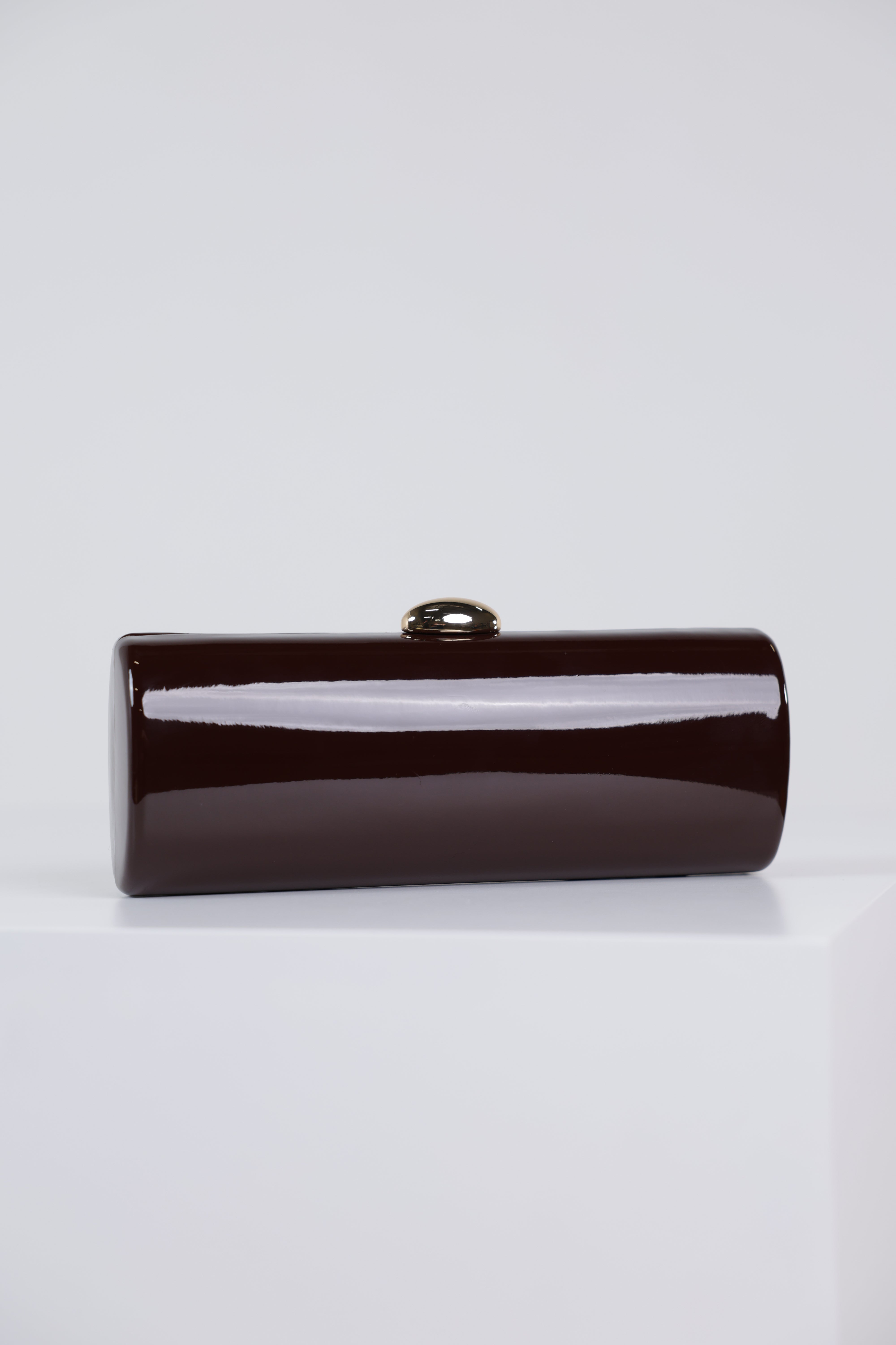 A structured high-gloss hard case clutch available in multiple colors—perfect for weddings, galas, and refined evening styling.