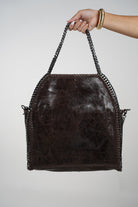 Make a statement with the Large Satchel Cow Bag, the perfect blend of western edge and city style. Crafted in a rich brown-and-white cowhide print with high-shine gunmetal chain handles, this bag delivers attitude and function. Its oversized design fits all your daily essentials while adding bold texture and contrast to any outfit. Whether you pair it with denim, neutrals, or leather, this bag steals the scene every time.