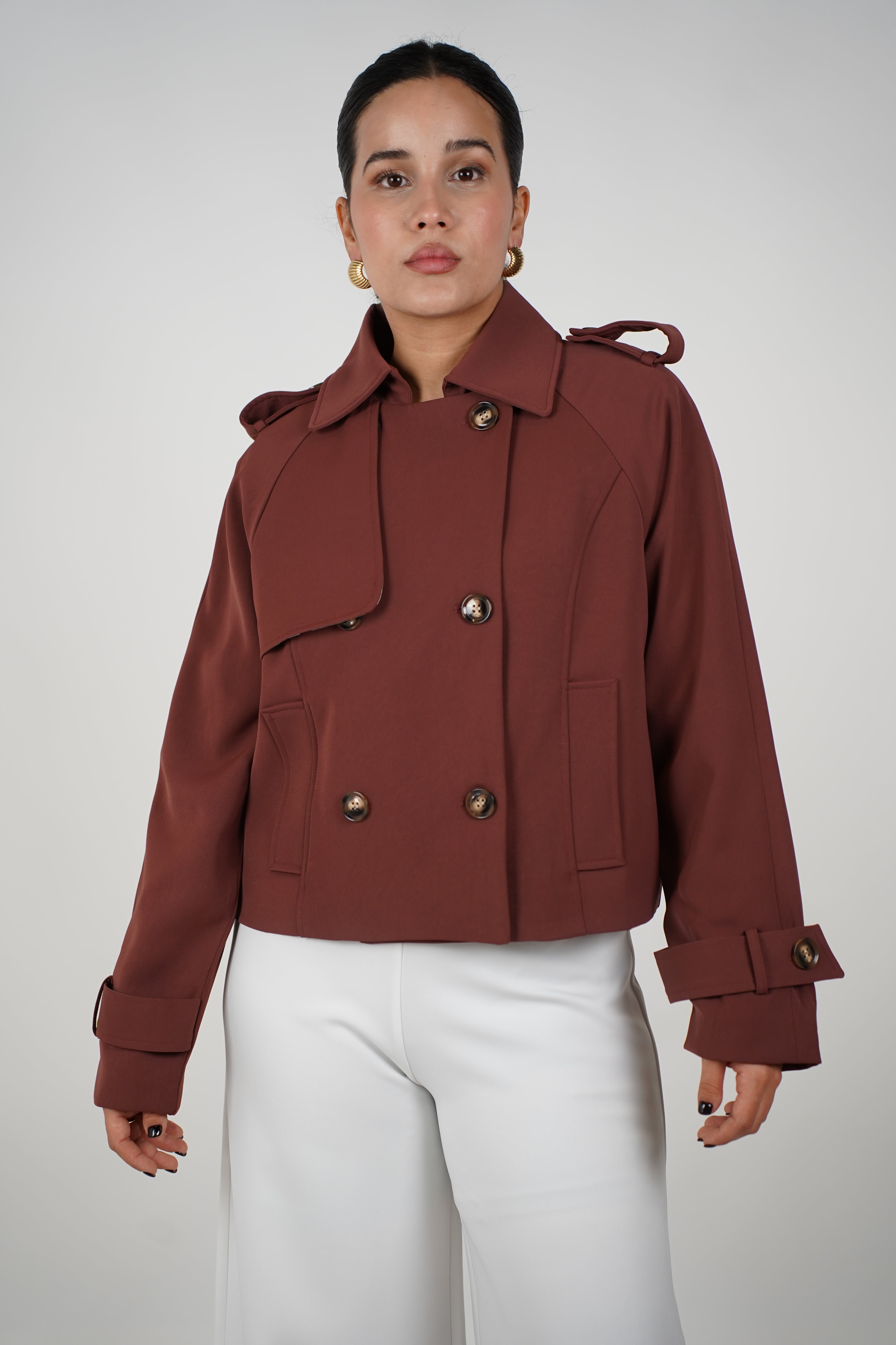 Liora Jacket | Cropped Trench-Style Jacket in Earthy Red