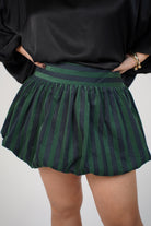 Lucerin Striped Mini Bubble Skirt | Elastic Waist Bubble Hem Skirt