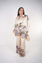 Lunare Stamped Pants Set – Elegant Satin Two-Piece Luxe Look