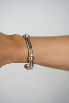 Shop the Lunet Bracelet — a mixed metal cable cuff with polished gold accents. Lightweight, flexible, and perfect for everyday elegance.
