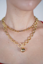 The Luzia Necklace is your go-to for bold yet refined elegance. This eye-catching piece combines textured, beaded-style oval links with a polished gold-tone ball pendant and toggle clasp front. It makes a stylish statement worn solo or paired with other chains for a layered effect. Whether you’re dressing up a blouse or styling a night-out look, Luzia adds instant glam.