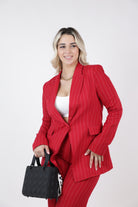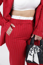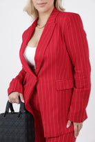 Red Pinstripe Blazer & Wide Leg Pants Set | Power Suit | Carema Boutique