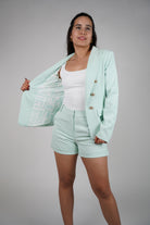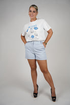 The Nela Shorts – Polished Cuffed Shorts in Soft Pastels are a versatile closet staple with a tailored twist. These high-waisted shorts feature a structured waistband, subtle front pleating, and neatly cuffed hems for a clean and flattering fit. Available in soft blush pink, mint green, and light blue, they're perfect for dressing up with a blazer or keeping it casual with a tank. Whether you're heading to brunch, the office, or a weekend stroll, the Nela Shorts offer effortless elegance and comfort in every color.