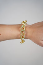 A bold chunky bracelet with an intertwined chain design and polished finish.