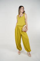 Easygoing yet chic, the Omiria Jogger Set is designed for relaxed days that still need style. Crafted in lightweight, breathable fabric, it features a flowy square-neck top with subtle ruffle straps and airy jogger-style pants with a comfortable elastic hem.