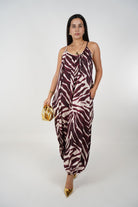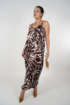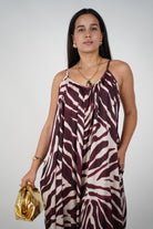 Shop the Raina Zebra Jumpsuit Joggers – a bold zebra-print flowy jumpsuit with jogger hems. Perfect for chic nights out or stylish daytime wear. Boutique fashion, 7-day store credit returns.