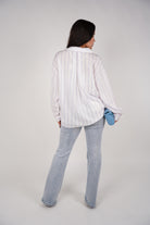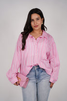 An effortless oversized button-down with soft stripes and a relaxed, polished feel.