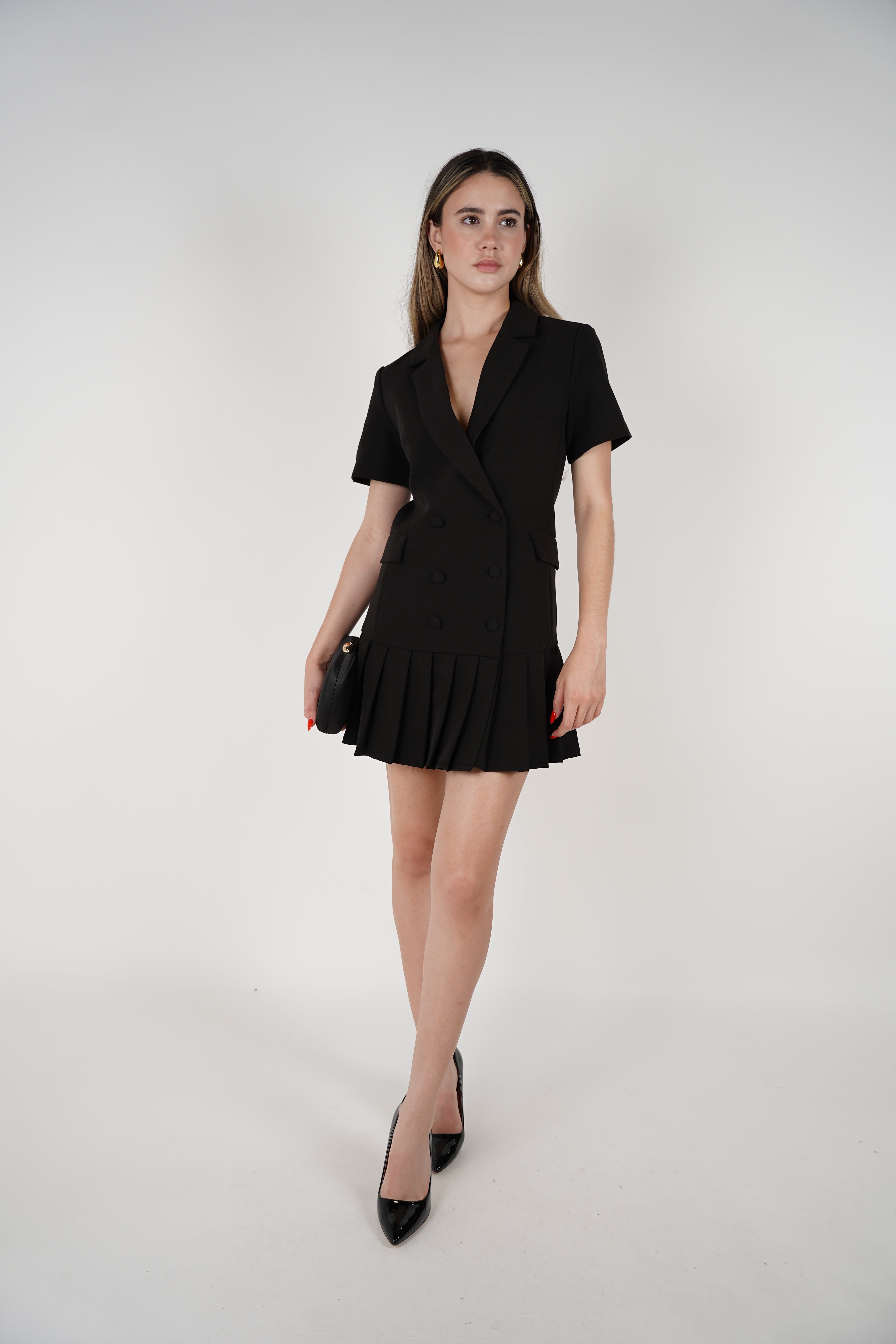 Sachi Dress – Chic Blazer-Inspired Mini with Pleated Skirt