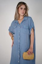 The Tais Maxi Linen Dress is your perfect warm-weather essential. Crafted in airy linen, this button-down style flows beautifully with every step while offering comfort and versatility. Featuring rolled short sleeves, two chest flap pockets, and a flattering straight silhouette with a front slit, it's ideal for vacation days, weekend brunches, or simply lounging in style. Pair it with wedges, sandals, or layer it open over a swimsuit.