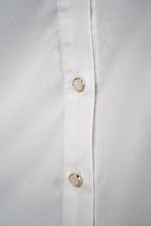 A crisp, elegant essential—this white button-down shirt features subtle gold-trimmed buttons for everyday sophistication.