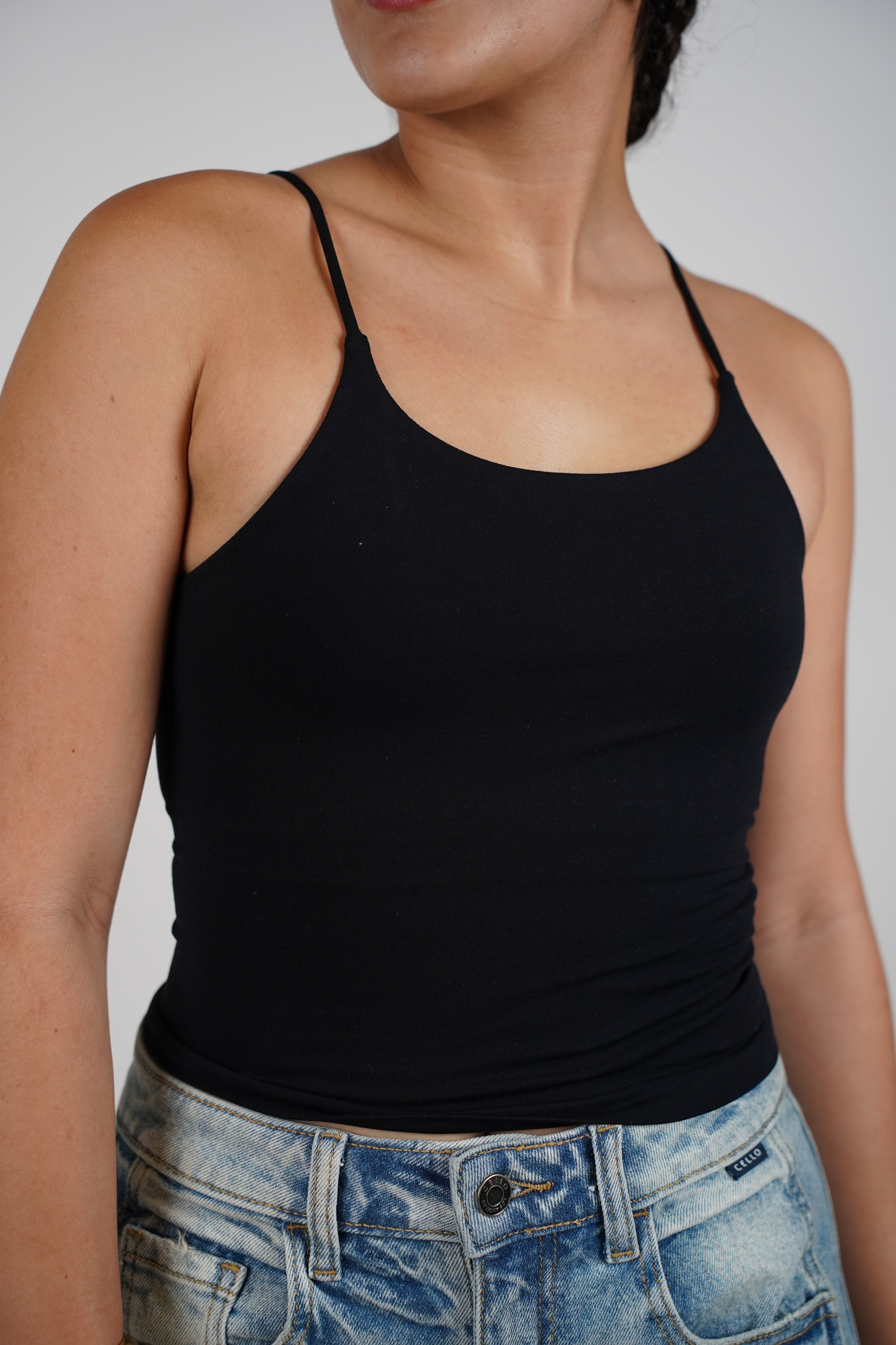 Vanu High Neck Spaghetti Strap Top – Clean, Crisp, and Closet-Ready