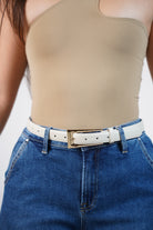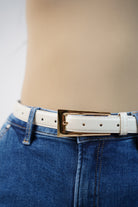 Velira Thin Belt – White Slim Belt with Rectangular Gold Buckle | Carema Boutique