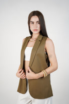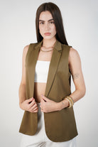 Viviaya Sleeveless Blazer Olive – Longline Tailored Vest