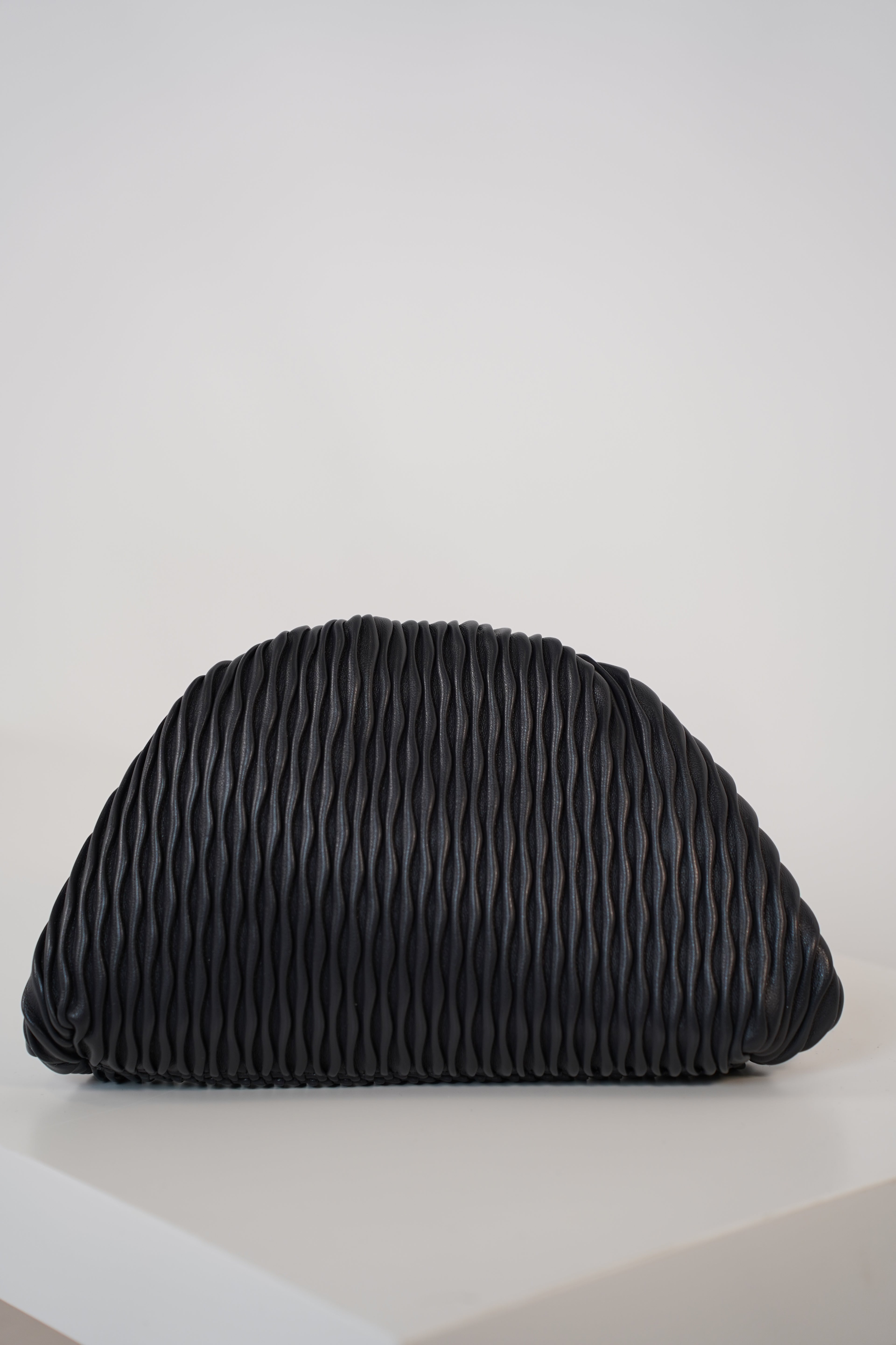 A sculptural, pleated clutch designed to elevate any look with its bold texture and chic minimalist shape.