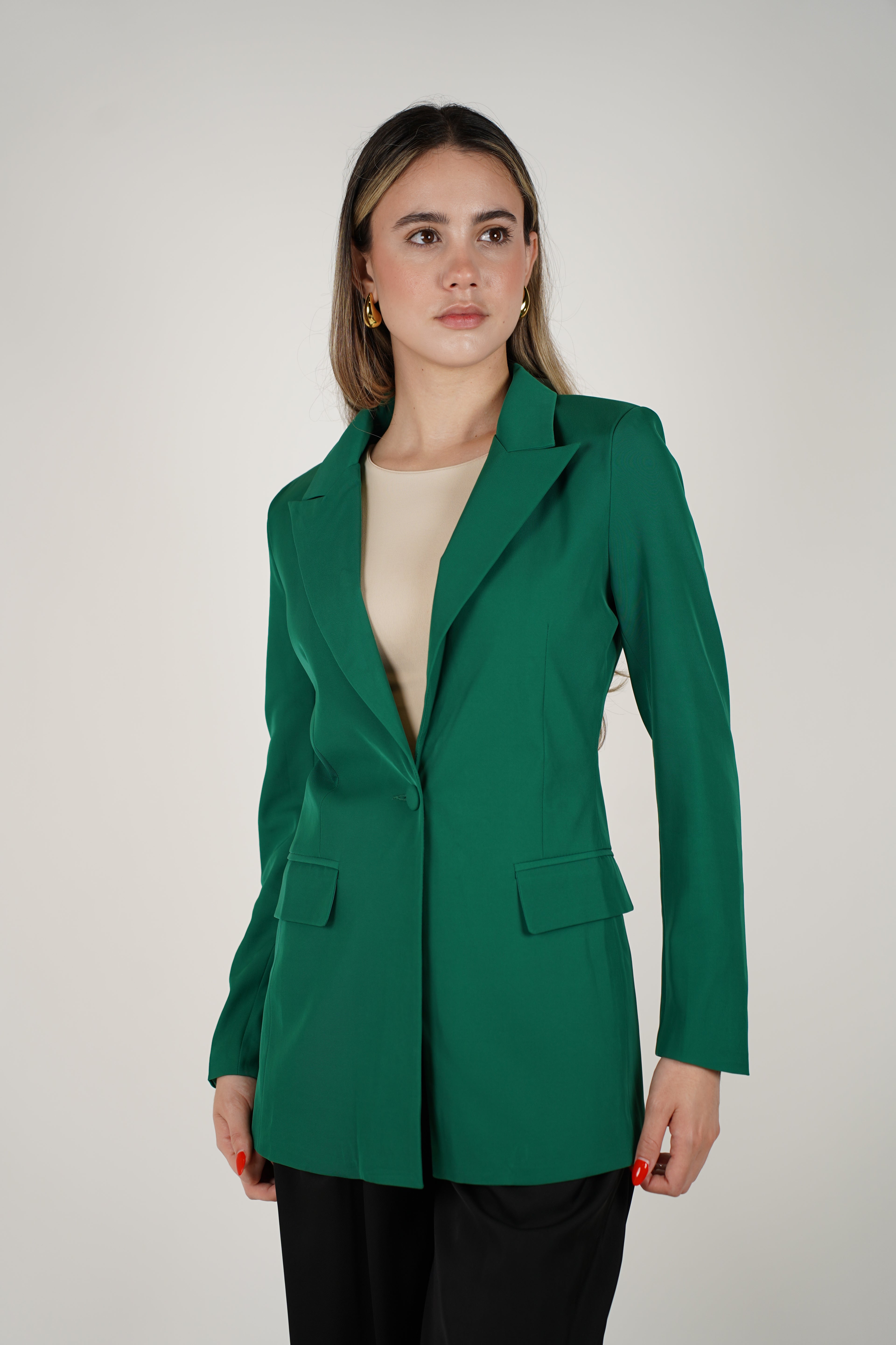 Meta Description: The Yalith Blazer features a clean, structured design with a one-button front and flap pockets. Available in multiple colors for versatile styling.