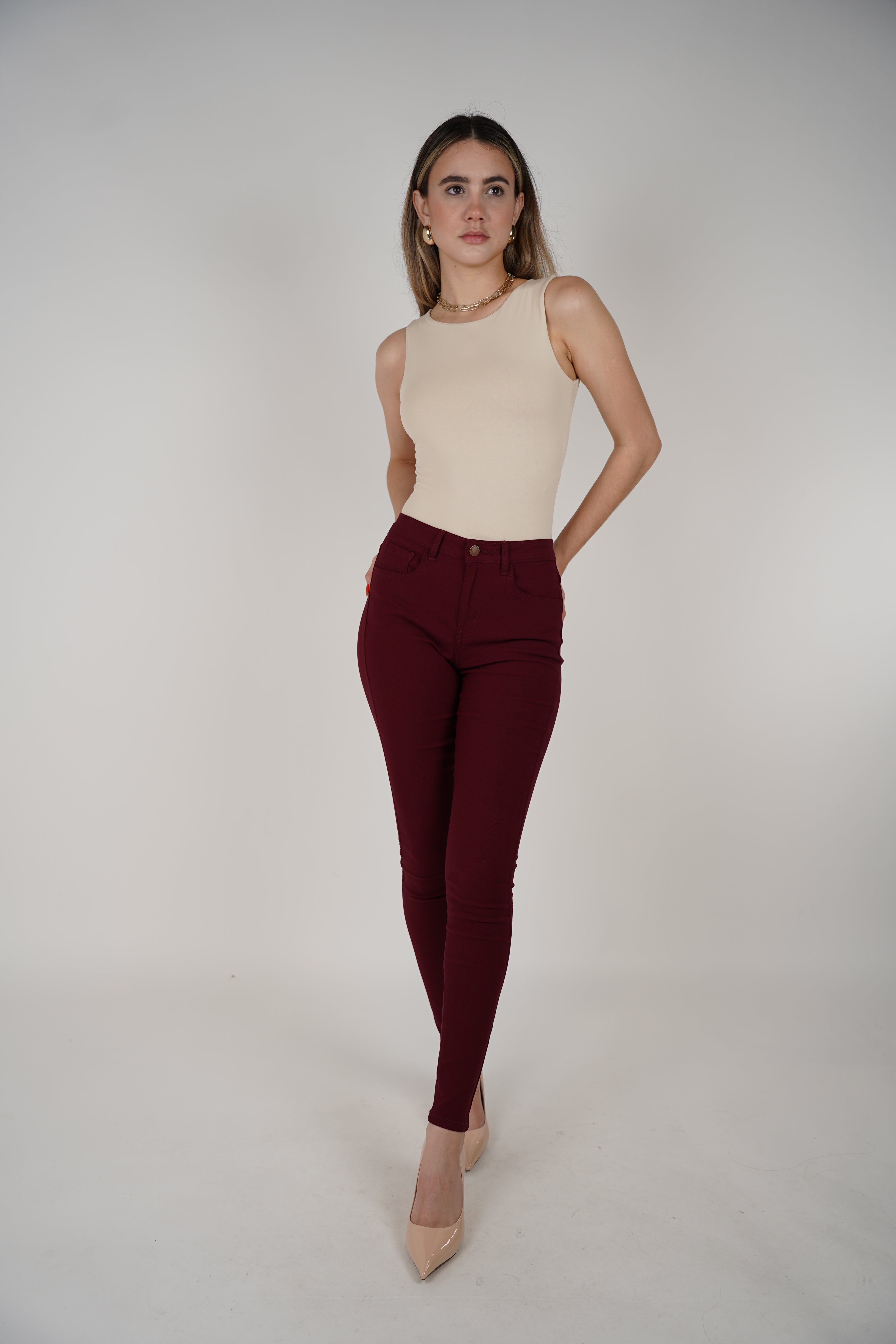 Meta Description: Shop the Yusimi Pants, our sculpting high-waisted skinnies in a rich maroon hue. Flattering fit with stretch—perfect for dressing up or down.