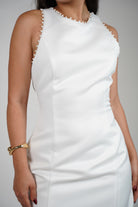 SEO Meta Title: Zoya Pearl Mini Dress – White Satin Backless Dress with Pearl Bows