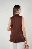 Meta Title: Zyra Sleeveless Vest – Tailored Layer in Chocolate Brown | Carema Boutique