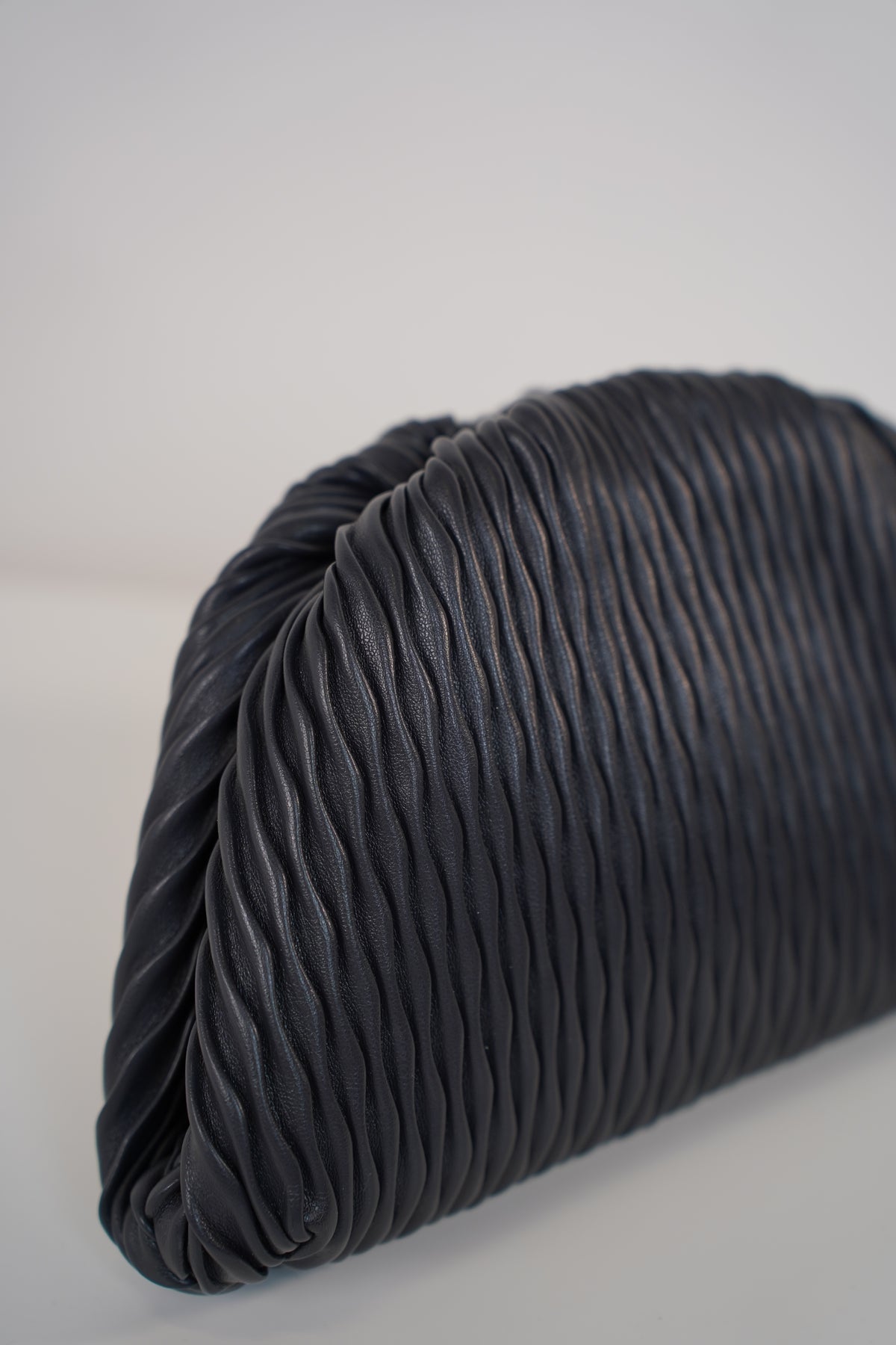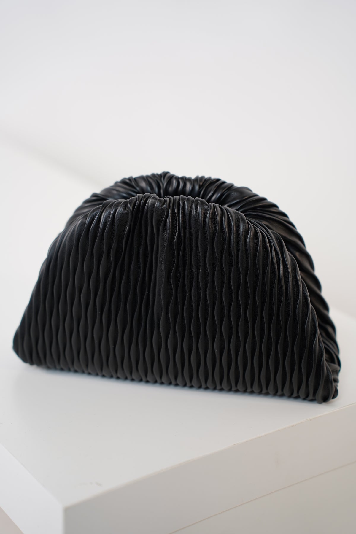 A sculptural, pleated clutch designed to elevate any look with its bold texture and chic minimalist shape.