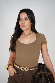 basic bodysuit, round neck bodysuit, short sleeve bodysuit, fitted bodysuit, everyday essential, layering piece, minimal style, wardrobe staple, elevated basics